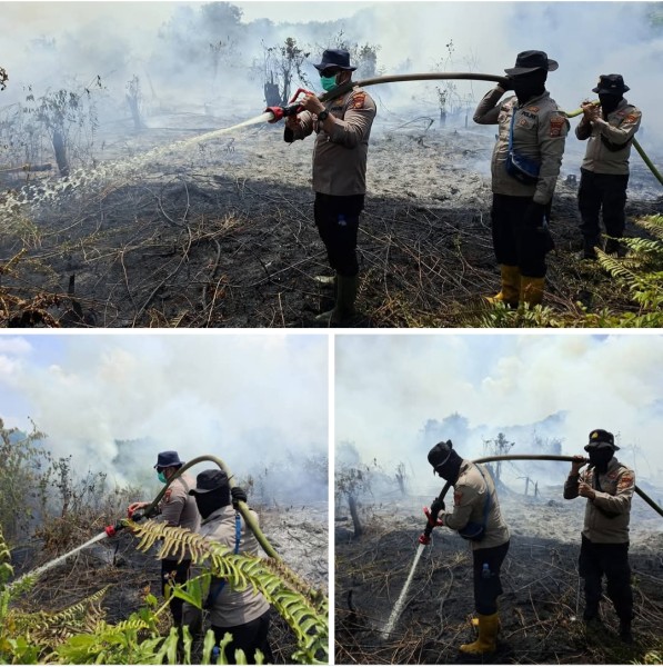 Kapolres Pelalawan Pimpin Pemadaman Api Karhutla di Pangkalan Kerinci