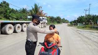PELALAWAN - Piket Yanmas Polsubsektor Pelalawan, Senin (7/2/2022) melaksanakan giat bagi masker d.