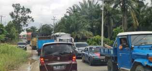 Macet Panjang Jalan Lintas Timur Pekanbaru-Pangkalan Kerinci