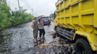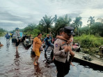 Polsubsektor Pelalawan bersama personil gabungan dari Polres non stop 24 jam mengantisipasi terjadinya kemacetan akibat genangan air di badan jalan